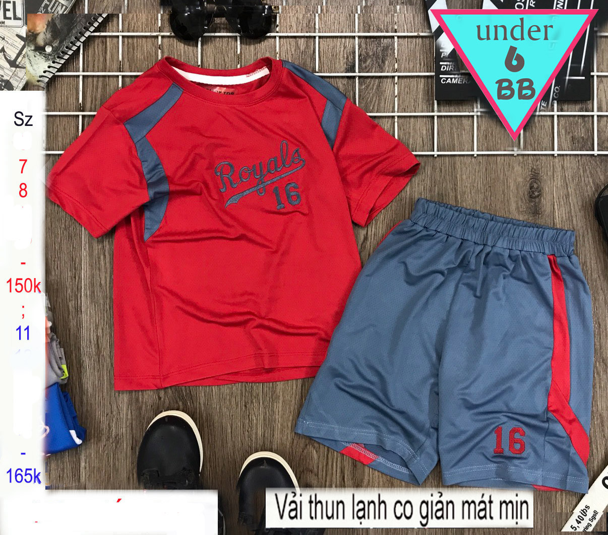 Đồ bộ bé trai thun lạnh thể thao tay ngắn thêu chữ số 16 cho bé trai đi chơi đi học