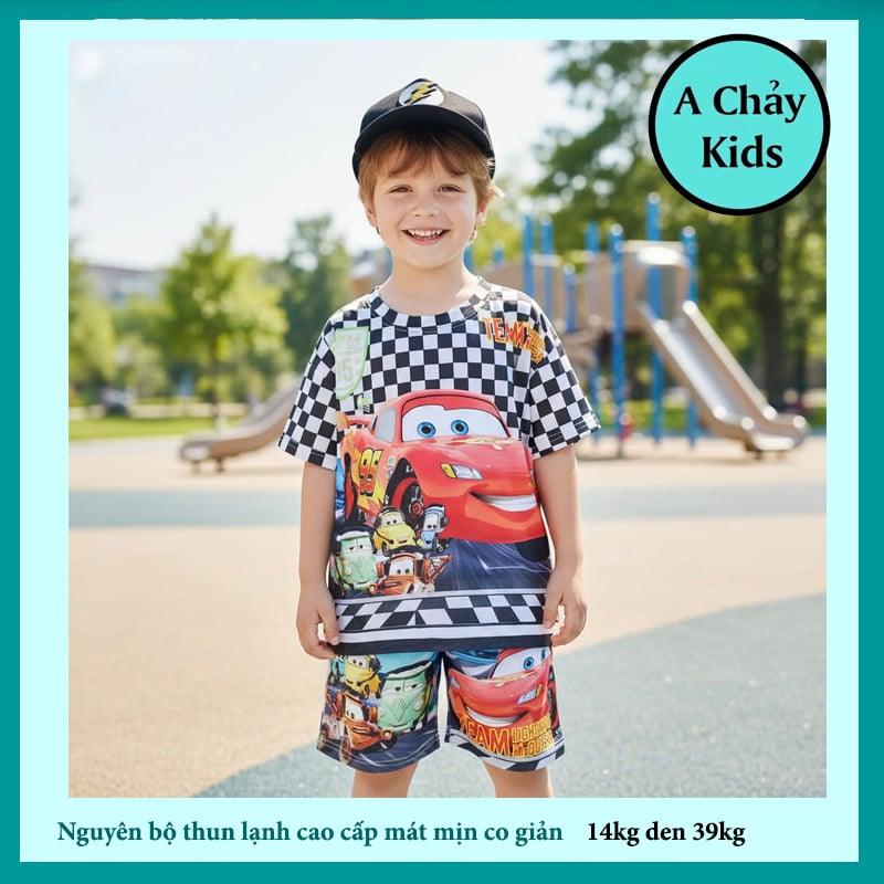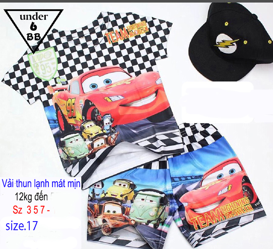 Đồ bộ bé trai thun lạnh tay ngắn in 3D xe Mc Queen cho bé đi chơi ,đi học