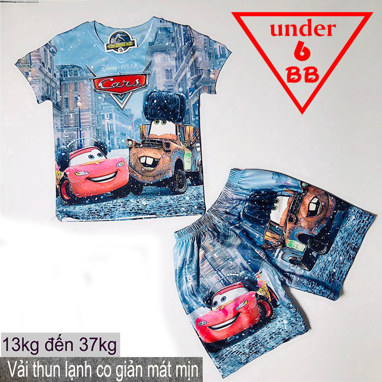 Đồ bộ bé trai thun lạnh tay ngắn in 3D xe Mc Queen cho bé đi chơi ,đi học