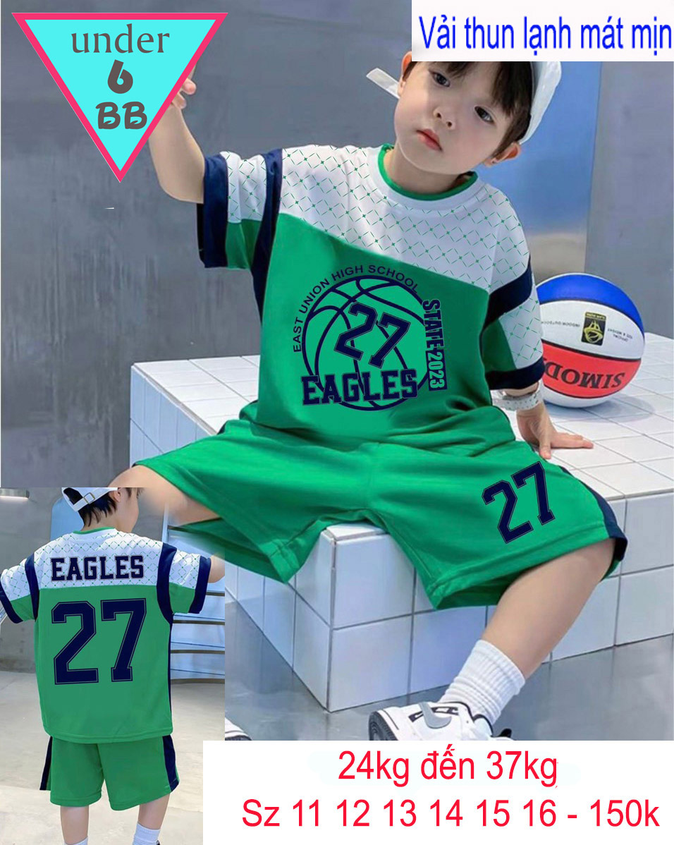 Đồ Bộ thun lạnh tay ngắn in số 27 phong cách thể thao bóng rổ cho bé trai đi chơi , đi học