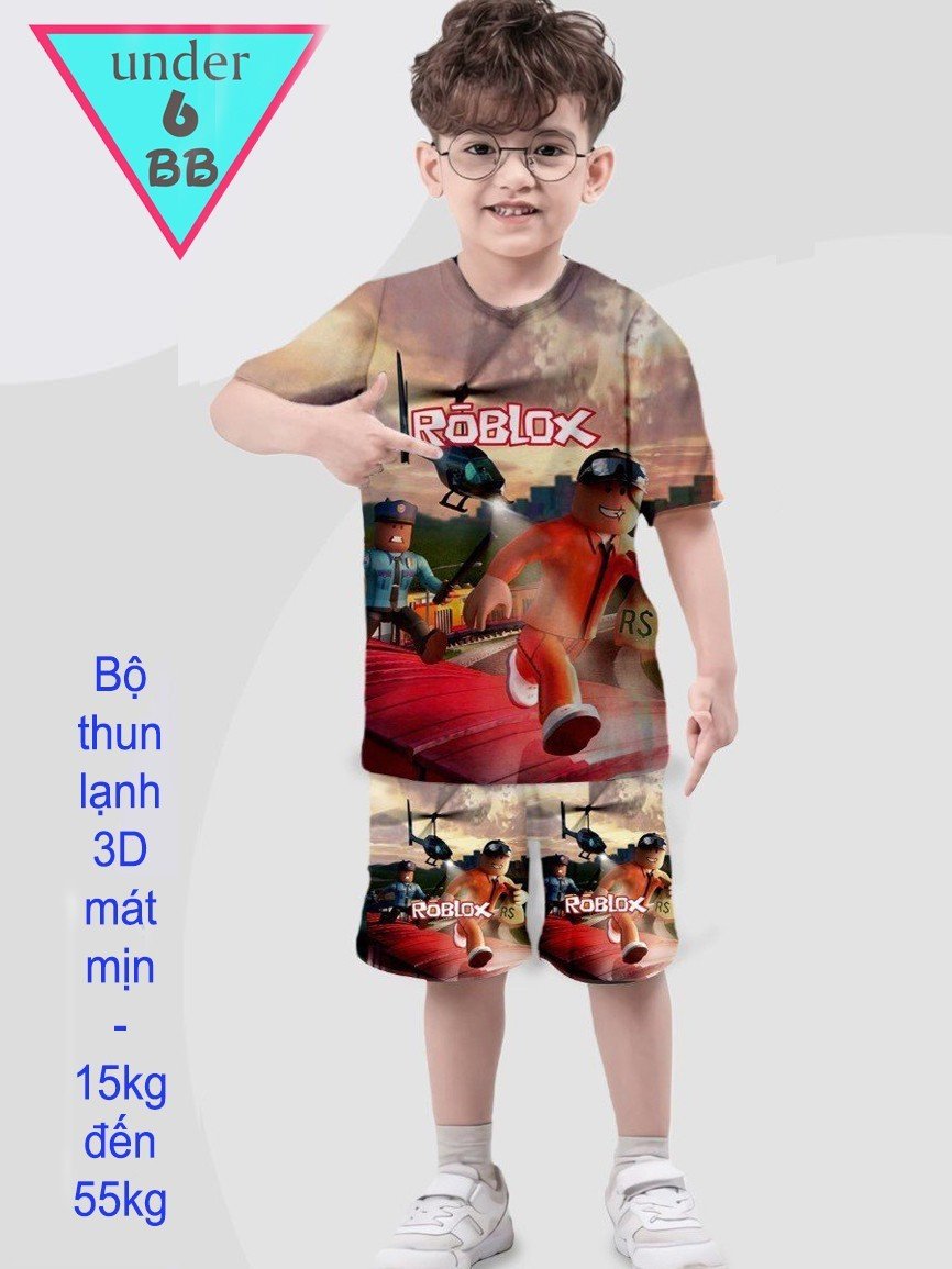 Đồ bộ bé trai thun lạnh tay ngắn in 3D hình Roblox cho bé đi chơi , đi học