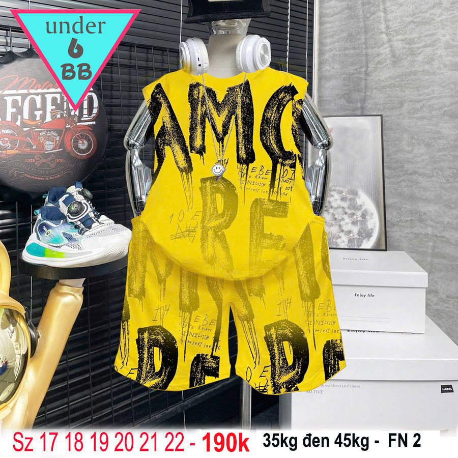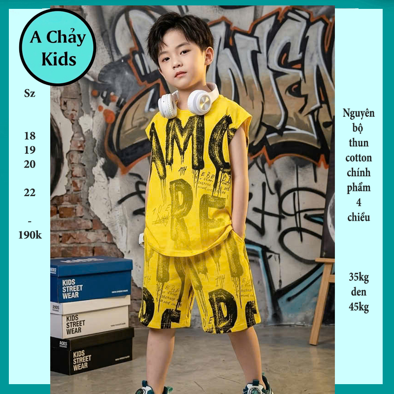 Đồ bộ bé trai sát nách cotton in chữ loang phong cách cá tính cho bé đi chơi, đi học