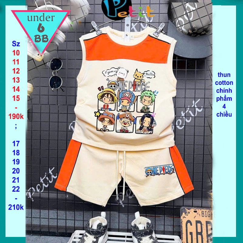 Đồ bộ bé trai sát nách cotton in hình anime One Piece phong cách cá tính cho bé đi chơi , đi học