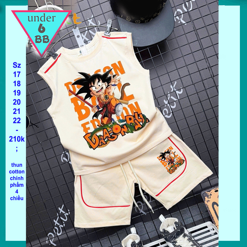 Đồ bộ bé trai sát nách cotton in hình anime Songoku phong cách cá tính cho bé đi chơi , đi học