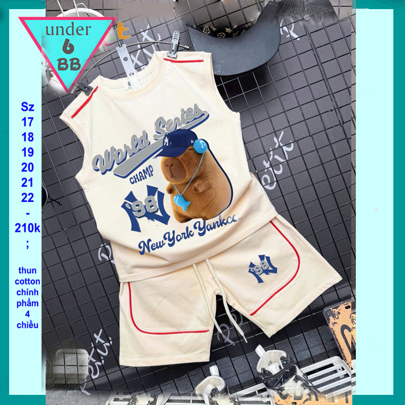 Đồ bộ bé trai sát nách cotton in hình Capybara đeo tai nghe phong cách cá tính cho bé đi chơi , đi học