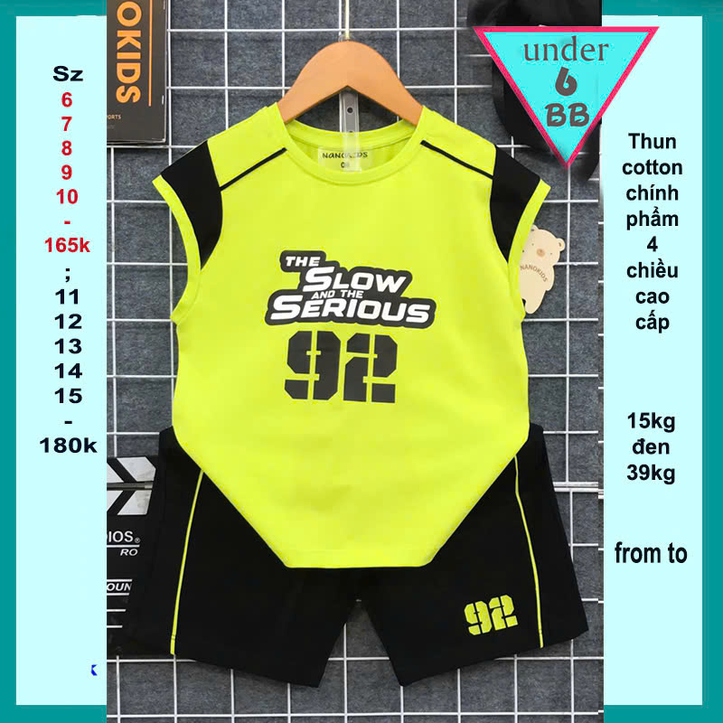 Đồ bộ sát nách bé trai cotton in số 92 phong cách thể thao cho bé đi chơi , đi học