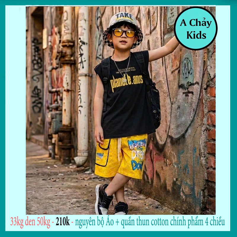 Đồ bộ bé trai sát nách cotton in chữ phong cách hiphop cực ngầu cho bé diện đi chơi , đi học
