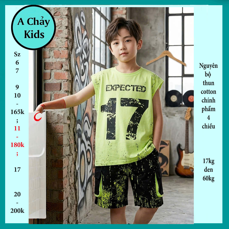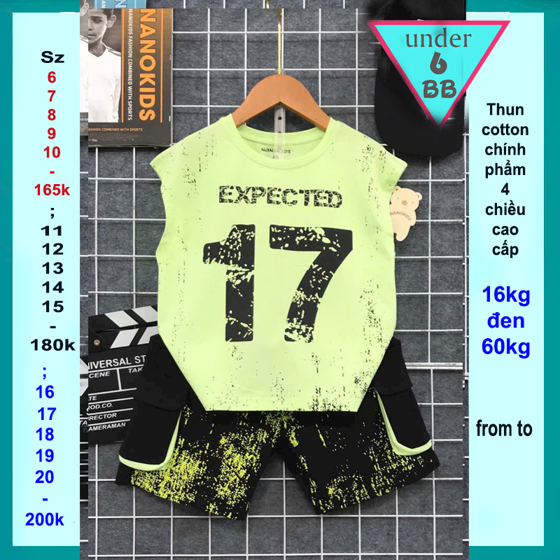 Đồ bộ sát nách cho bé trai in số 17 phong cách thể thao cá tính cho bé đi chơi , đi học