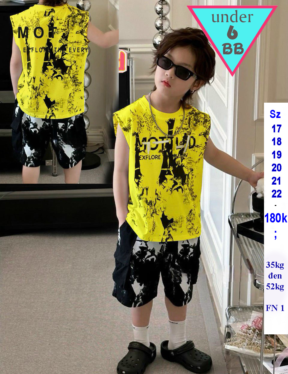 Đồ bộ bé trai sát nách cotton in chữ phong cách hiphop siêu ngầu cho bé đi chơi , đi học