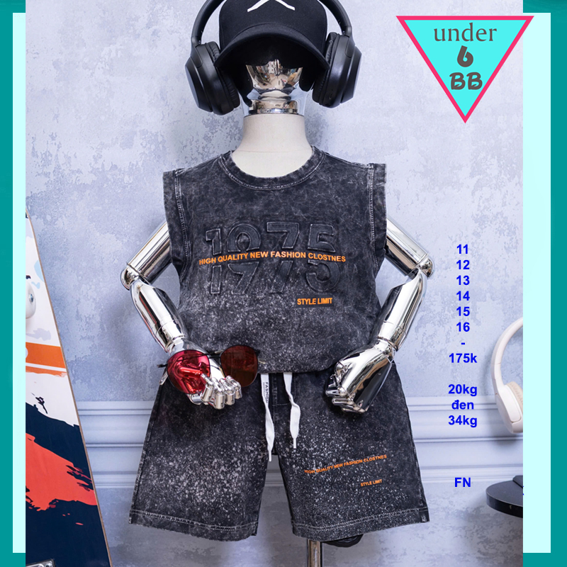 Đồ bộ bé trai sát nách cotton ( Vải wash ) in chữ nổi phong cách sang xịn cho bé đi chơi , đi du lịch