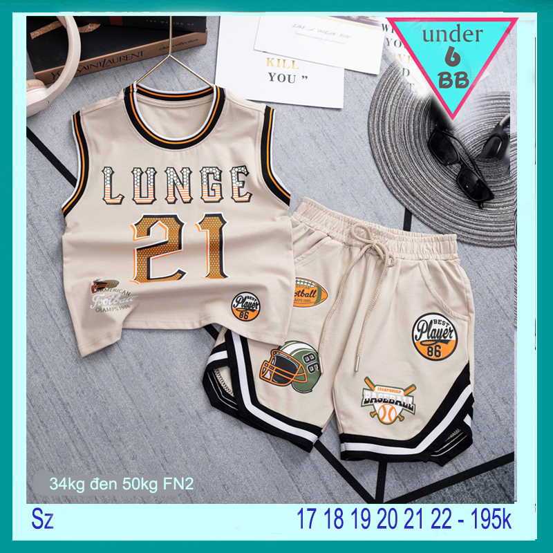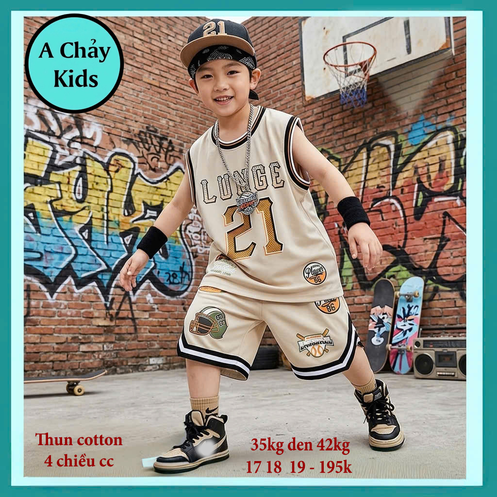 Đồ bộ bé trai sát nách cotton in số 21 phong cách thể thao cho bé đi chơi , đi học