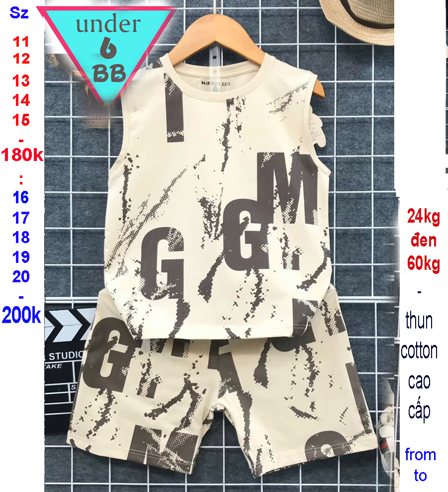 Đồ bộ sát nách bé trai cotton in chữ phong cách cá tính cho bé đi chơi , đi học