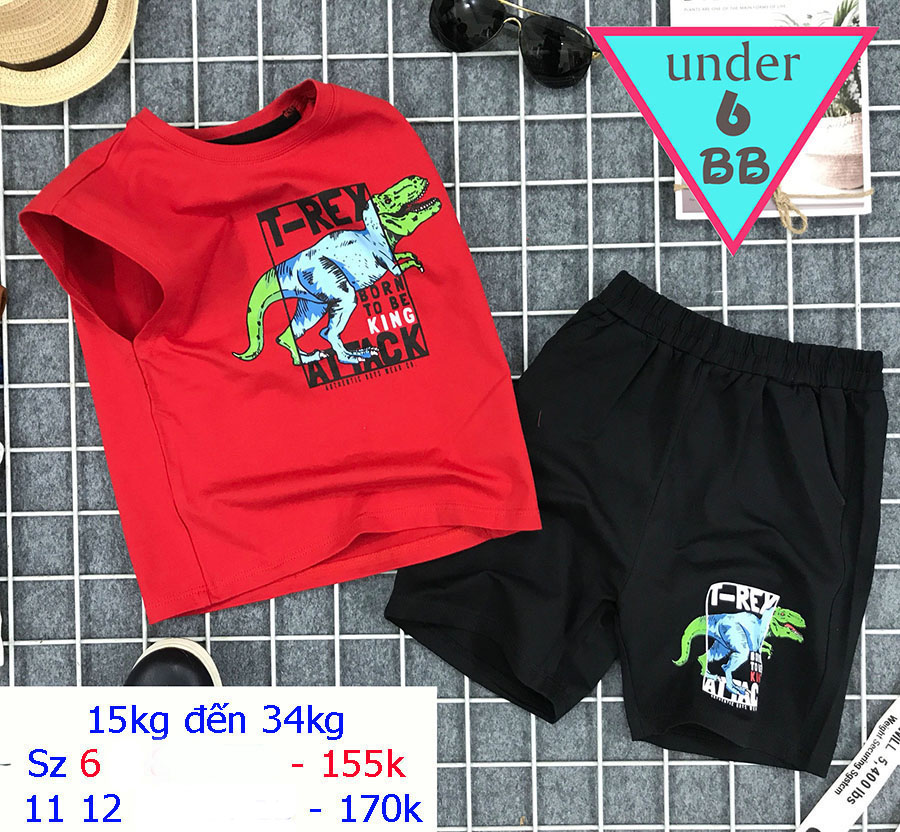 Đồ bộ sát nách bé trai cotton in hình chú Khủng Long Siêu đáng yêu cho bé đi chơi , đi học