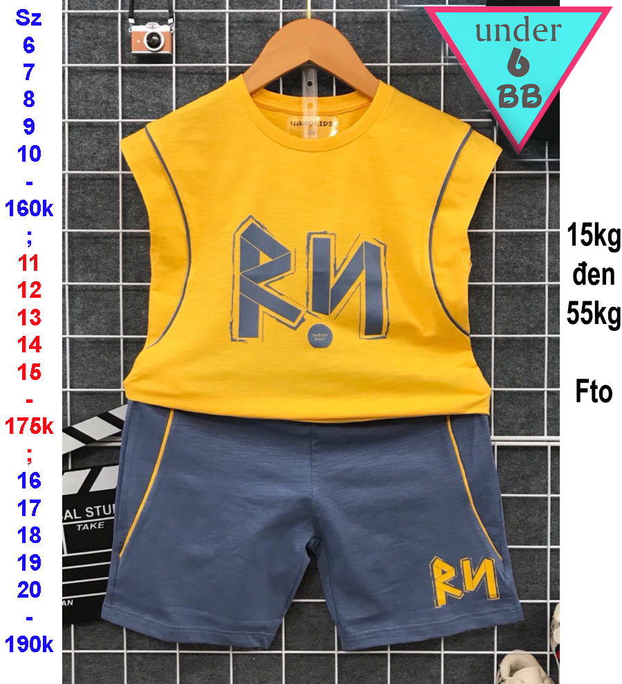 Đồ bộ sát nách bé trai cotton in chữ RN phong cách cá tính cho bé đi chơi , đi học