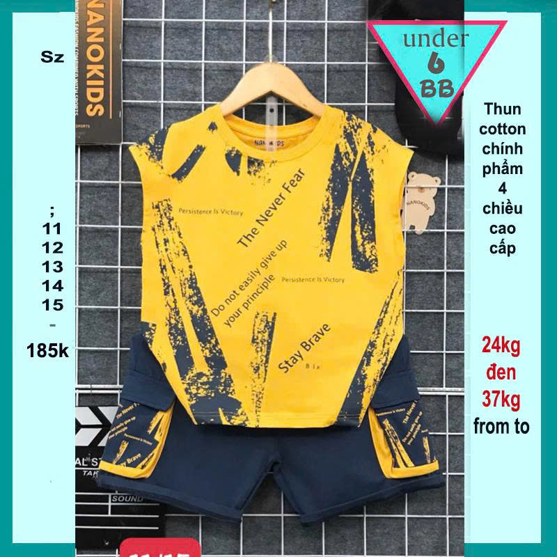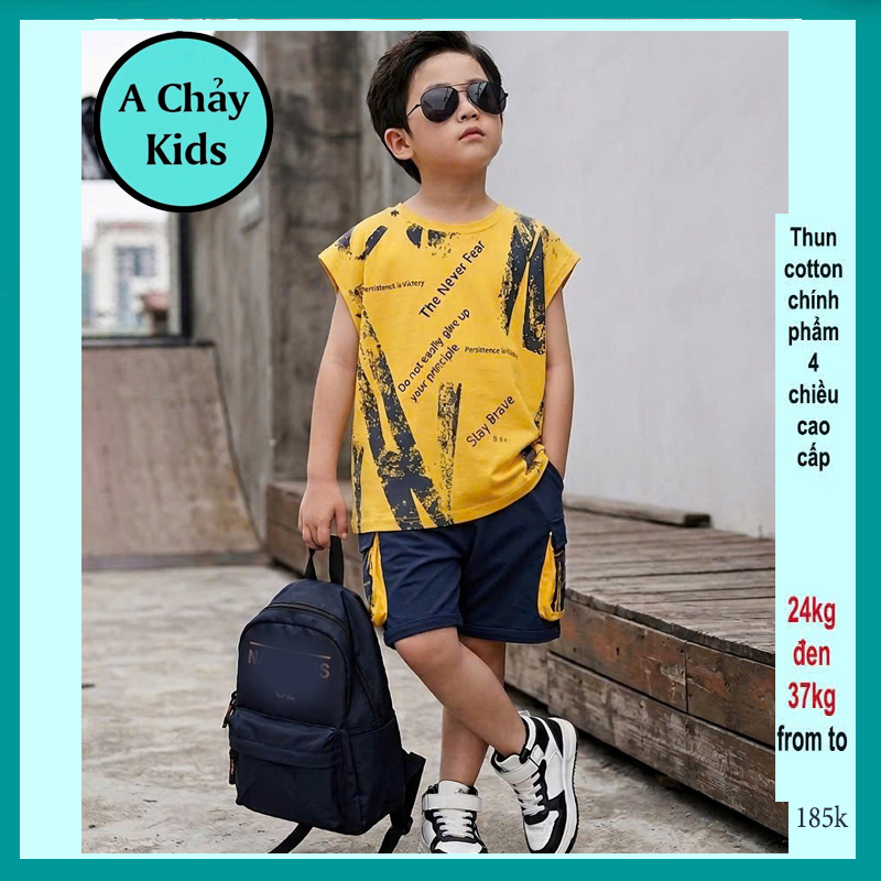 Đồ bộ bé trai sát nách cotton in chữ phong cách cá tính cho bé yêu đi đi chơi , du lịch mùa hè