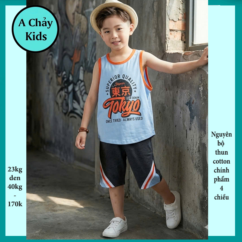 Quần áo sát nách bé trai in chữ Takyo phong cách cá tính cho bé đi chơi , đi học