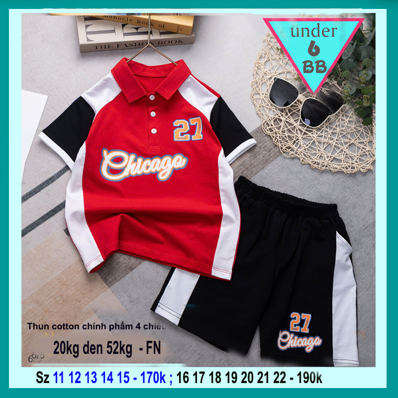Set đồ bộ bé trai có cổ in chữ phong cách thời trang sang xịn cho bé đi chơi , đi du lịch