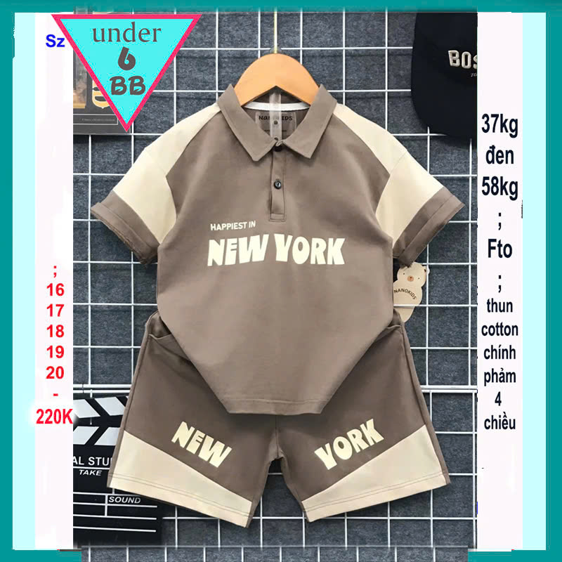 Set đồ bộ bé trai cổ trụ in chữ NEW YORK phong cách cá tính cho bé đi chơi , đi học