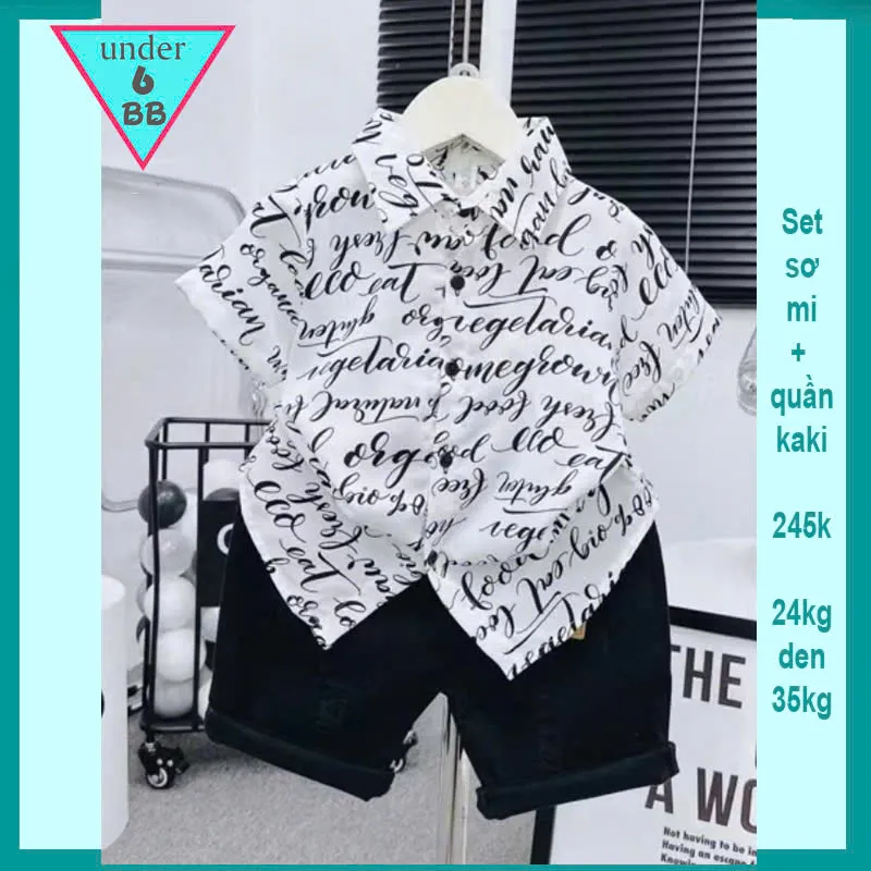 Set sơ mi bé trai in full chữ phong cách cá tính cực sang cho bé diện đi chơi , đi tiệc