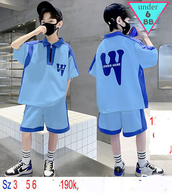 Set bộ cổ trụ bé trai tay ngắn in họa tiết chữ W phong cách cá tính cho bé đi chơi đi học ( xanh dương 01)