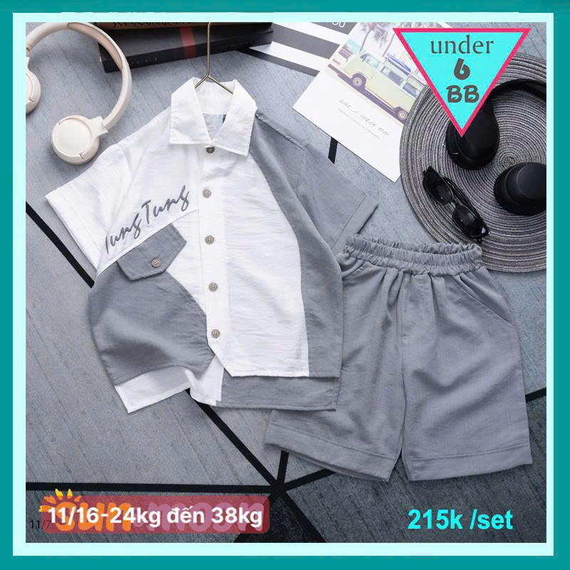 Set đồ bộ bé trai có cổ ( vải đũi ) in chữ mang phong cách hàn quốc cá tính cho bé diện đi chơi, đi tiệc