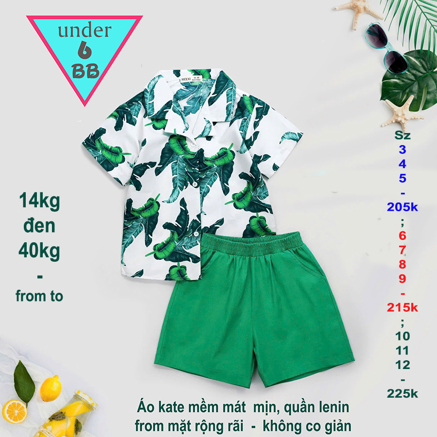 Set đồ bộ bé trai cổ trụ in họa tiết lá phong cách đi chơi mùa hè đi biển
