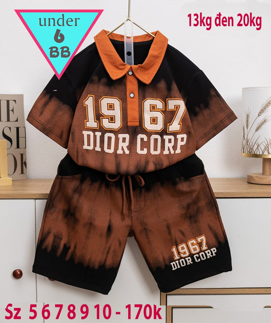 Set bộ cổ trụ bé trai tay ngắn in số 1967 ( Màu Cam 085 )