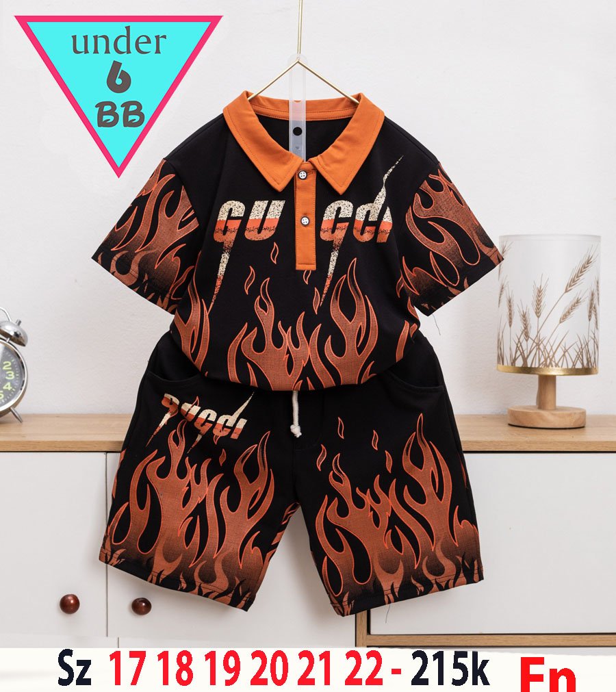 Set bộ cổ trụ bé trai tay ngắn in họa tiết ngọn lửa phong cách cá tính cho bé đi chơi , đi học