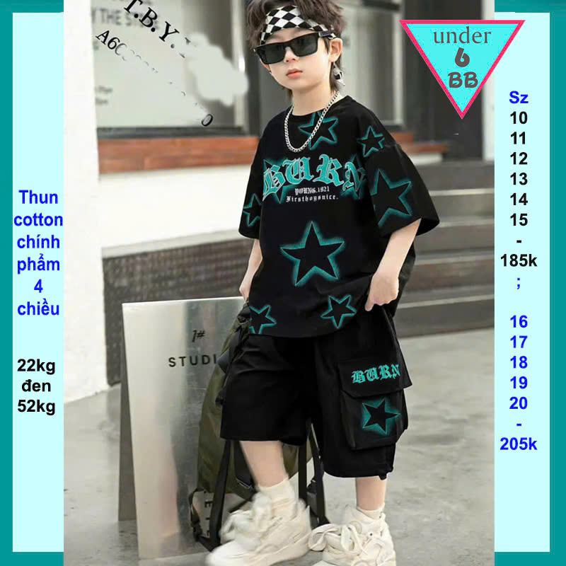 Đồ Bộ bé trai cá tính hiphop in chữ phối ngôi sao phong cách cá tính cho bé đi chơi ,đi học