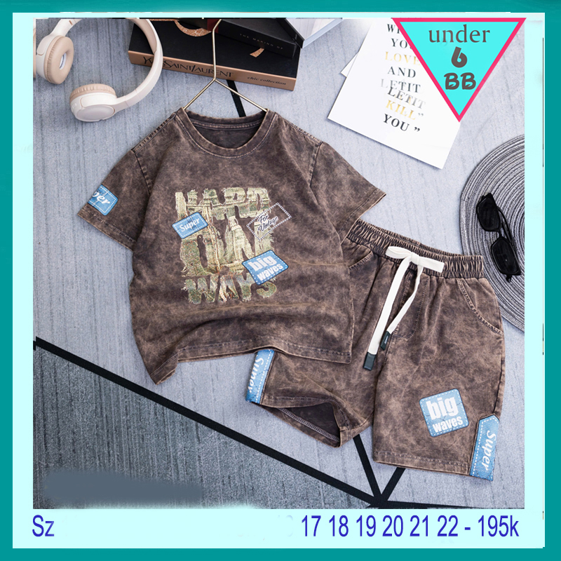 Đồ bộ bé trai cotton tay ngắn ( vải wash ) in chữ phong cách cá tính cho bé đi chơi , đi học