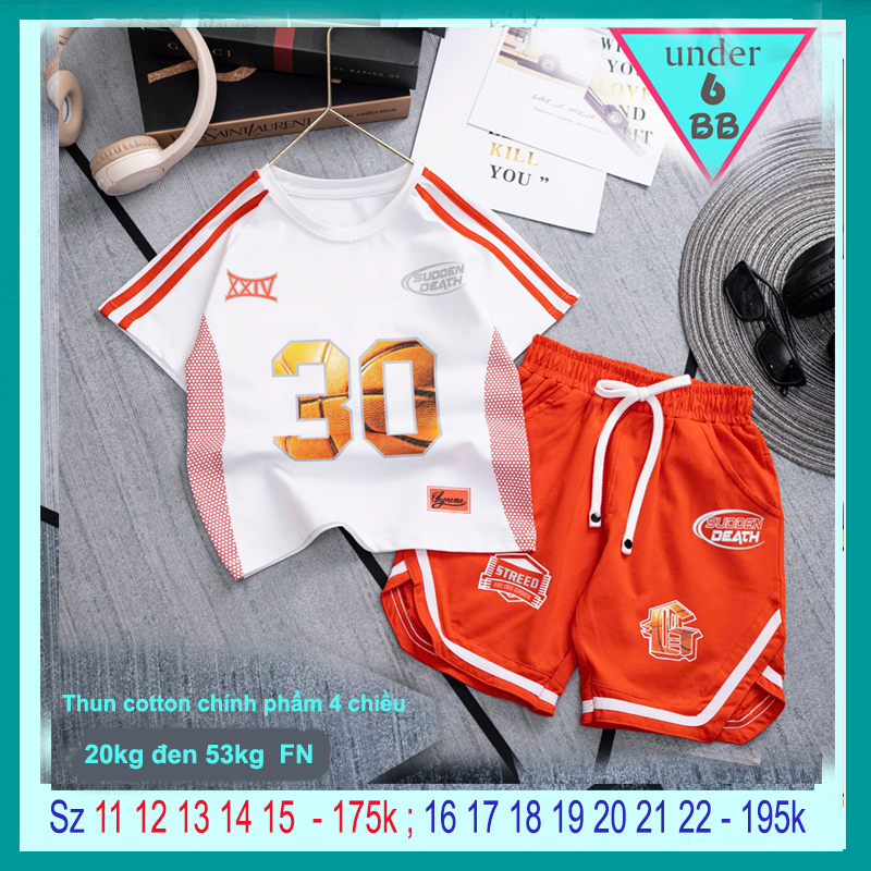 Đồ bộ bé trai cotton tay ngắn in số 30 phong cách thể thao cho bé đi chơi , đi học