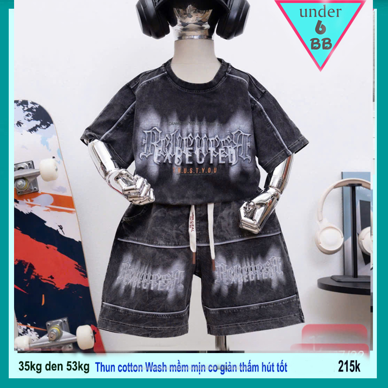 Đồ bộ bé trai cotton tay ngắn ( Vải wash ) in chữ mang phong cách thời trang cá tính cho bé đi chơi , đi học