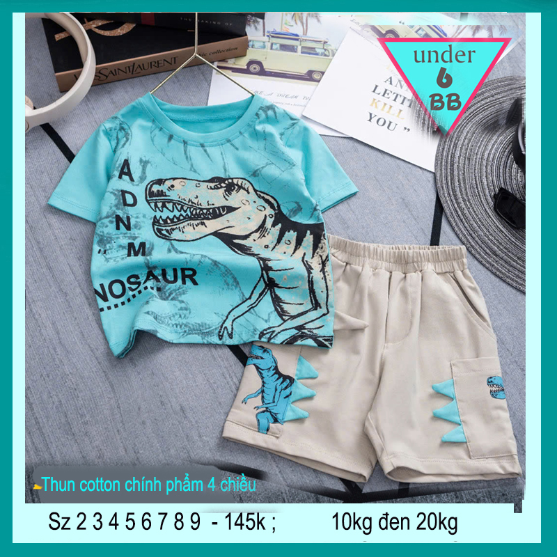 Đồ bộ bé trai dễ thương in hình khủng long bạo chúa có vẩy cho bé đi chơi , đi học