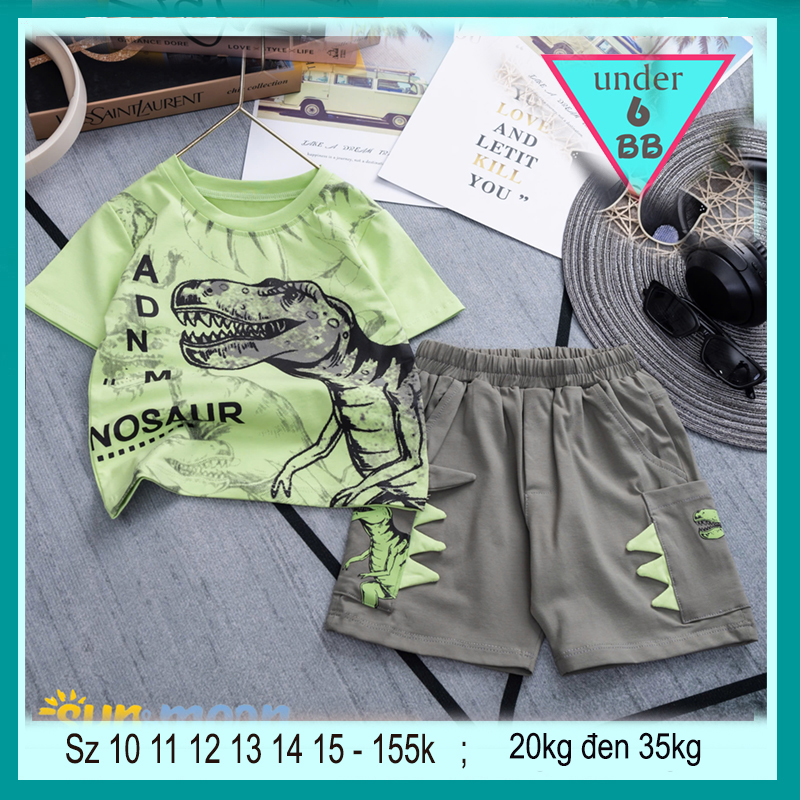 Đồ bộ bé trai dễ thương in hình khủng long bạo chúa có vẩy cho bé đi chơi , đi học