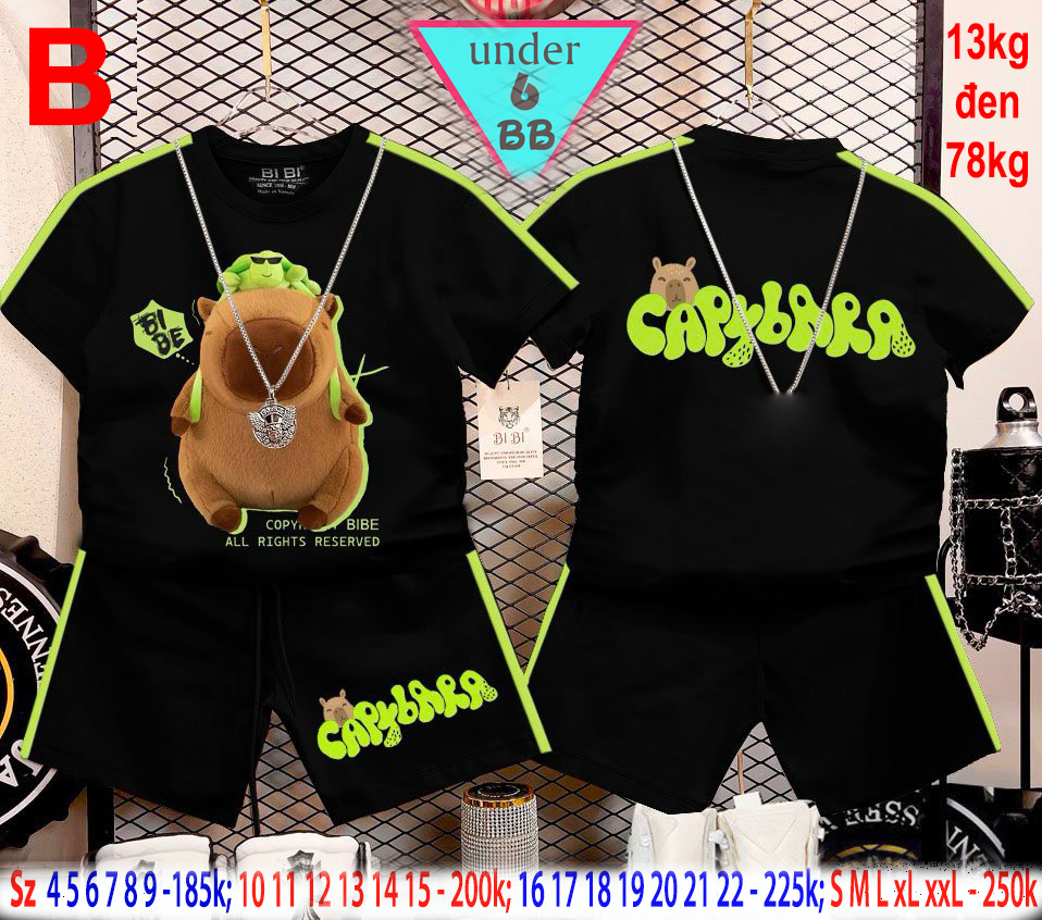 Đồ bộ bé trai hoạt hình in hình Capybara đội nón rùa phong cách cá tính cho bé đi chơi , đi học