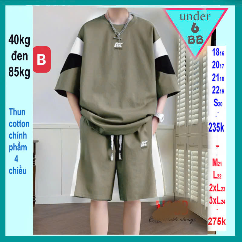 Chất liệu sp : Nguyên Bộ vải thun cotton cao cấp, mát, mịn, co giãn 4 chiều, thấm hút mồ hôi.
