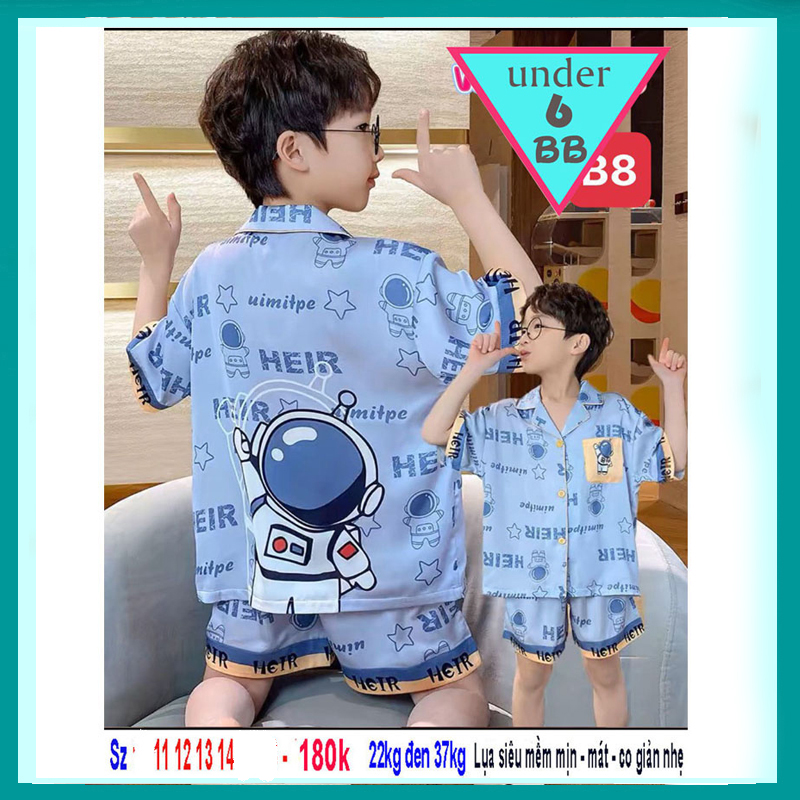 Đồ bộ bé trai hoạt hình pijama phi lụa in hình Phi Hành Gia cho bé mặc nhà , mặc ngủ