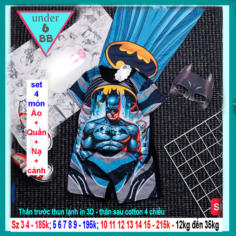 Quần áo bé trai in 3D hình siêu nhân Người Dơi - Batman ( Kèm phụ kiện ) cho bé đi chơi lễ hội hóa trang