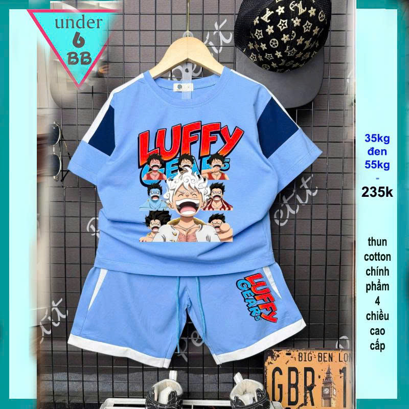 Set đồ bộ bé trai hoạt hình in anime hình Luffy phong cách cá tính cho bé đi chơi, đi học