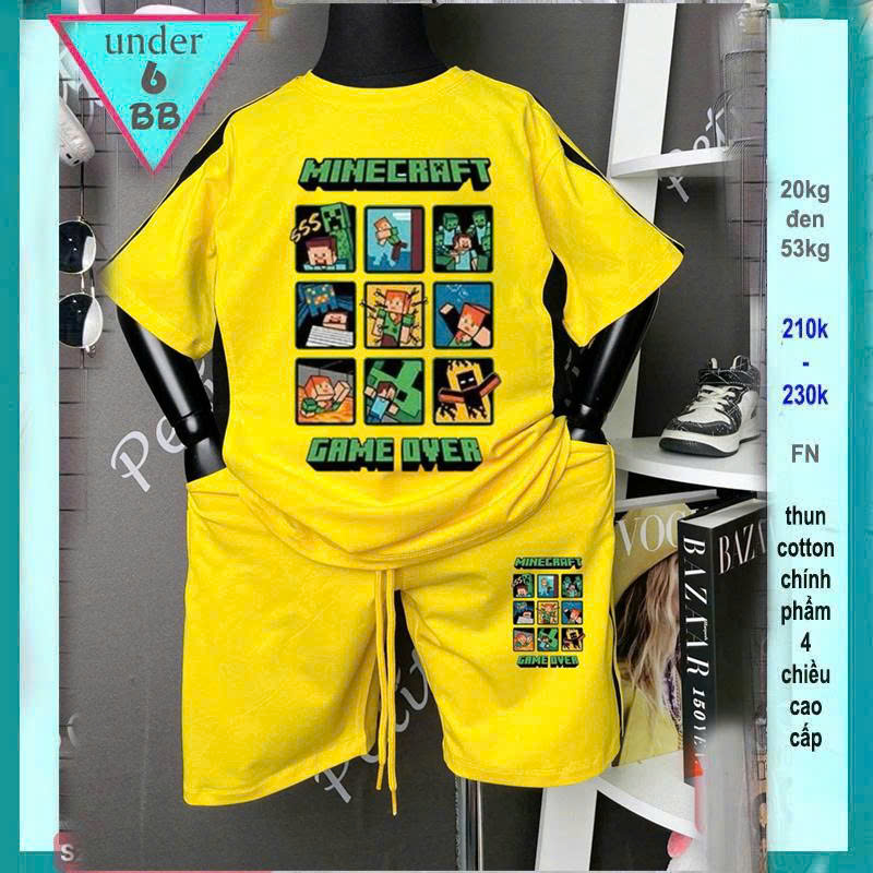 Set đồ bộ bé trai hoạt hình in hình Minecraft phối màu cá tính cho bé diện đi chơi , đi học
