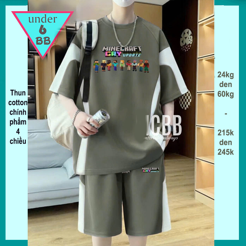 Set đồ bộ bé trai hoạt hình in Minecraft phong cách cá tính cho bé đi chơi ,đi học