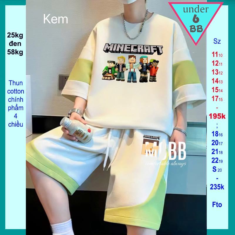 Set đồ bộ bé trai hoạt hình in họa tiết Minecraft phong cách cá tính cho bé đi chơi ,đi học