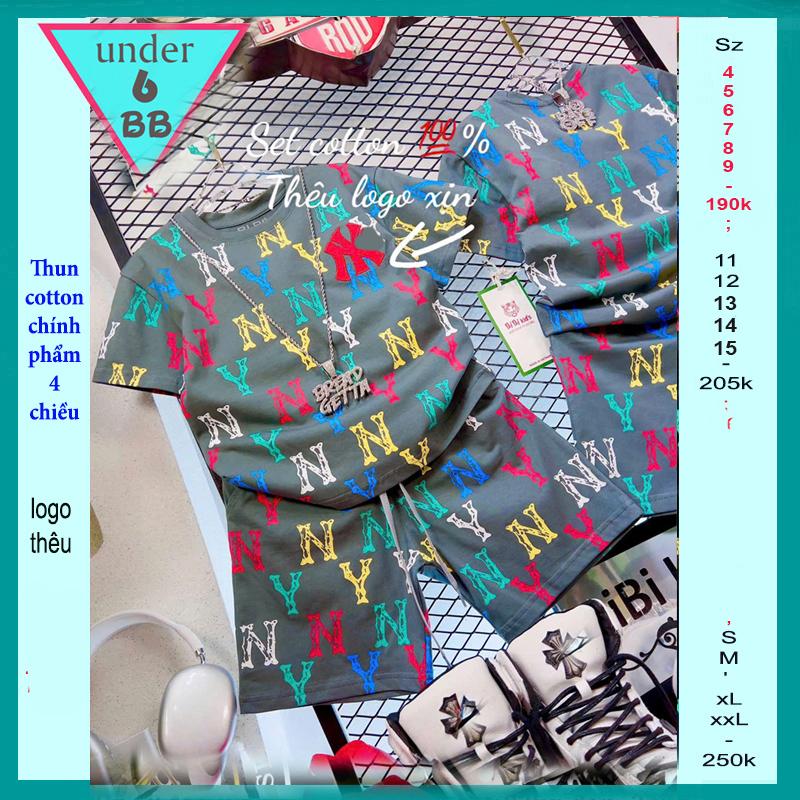 Set đồ bộ bé trai tay ngắn thêu chữ phong cách cá tính cho bé đi , chơi học
