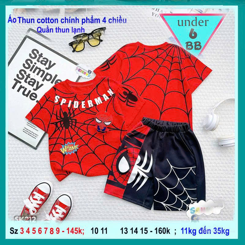Quần áo bé trai ( Áo thun cotton + quần thun lạnh ) in họa tiết siêu nhân người nhện - Spiderman cho bé đi chơi , đi học