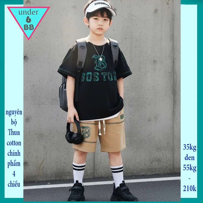 Đồ bộ bé trai cotton tay ngắn in chữ B phong cách cực sang cho bé diện đi chơi, đi học