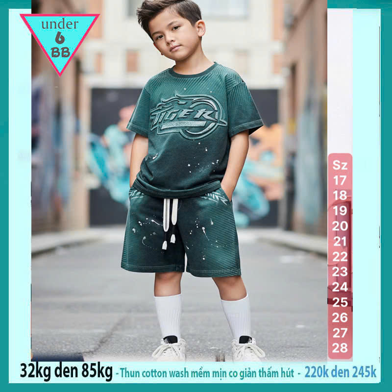 Đồ bộ bé trai cotton tay ngắn ( vải wash ) in chữ style cá tính cực ngầu cho bé diện đi chơi , đi học