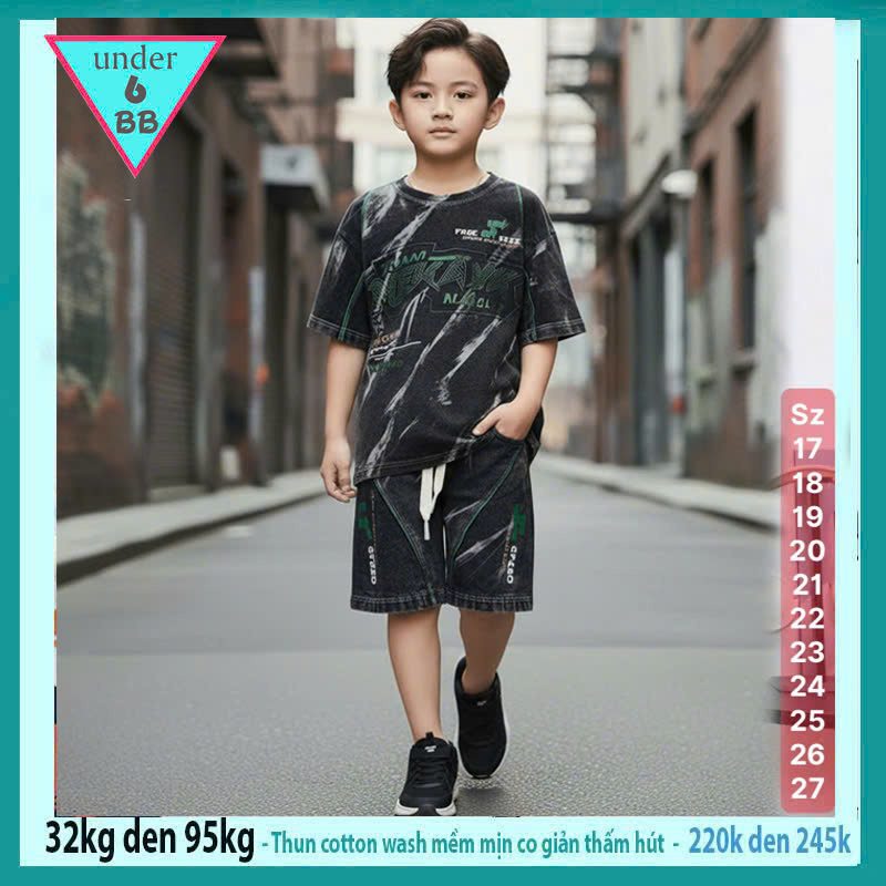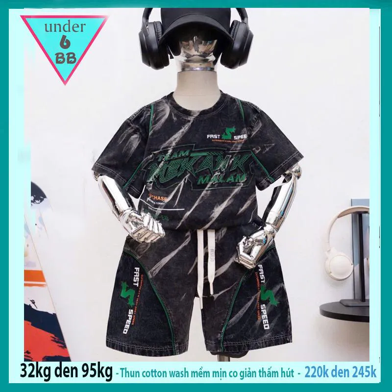 Đồ bộ bé trai cotton tay ngắn ( vải wash ) in chữ phong cách thời trang cá tính cực ngầu cho bé diện đi chơi , đi học