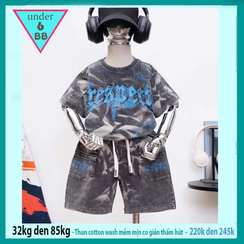 Đồ bộ bé trai cotton tay ngắn ( vải wash ) in chữ phong cách thời trang cá tính cực ngầu cho bé diện đi chơi , đi học