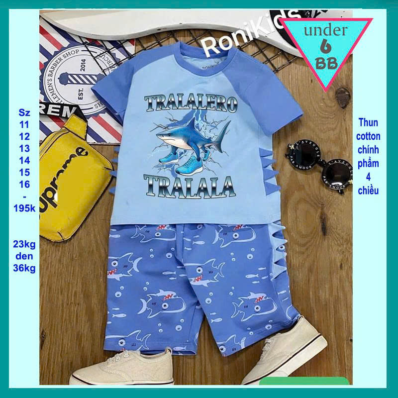 Đồ bộ bé trai dễ thương in hình Cá Mập Tralalelo Tralala siêu hottrend cho bé diện đi học , đi chơi