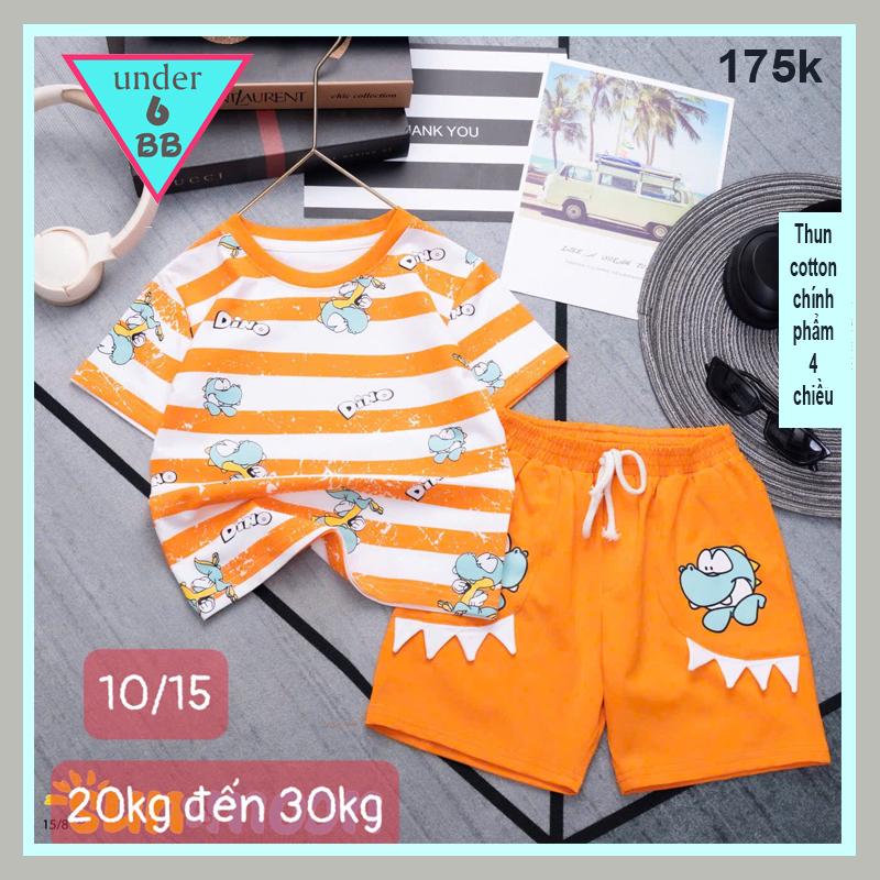 Đồ bộ bé trai dễ thương in hình Khủng Long phối sọc siêu đáng yêu cho bé đi chơi , đi học